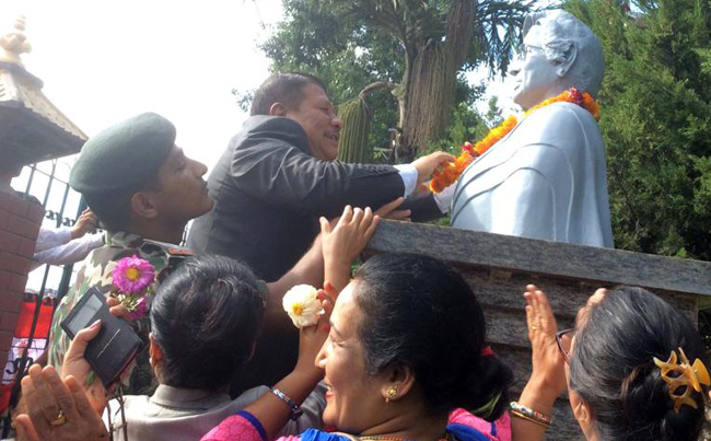 १० भदौ, काठमाडौं । मंगलादेवी सिंहको १९ औं स्मृति दिवस नेपाली कांग्रेसका भ्रातृ संगठनहरुले बिभिन्न कार्यक्रम गरी मनाउँदैछन् । विहीबार नेपाल महिला संघले काठमाडौं जिल्ला समितिले शोभाभगवतीमा मंगलादेवीको प्रतिमामा माल्यार्पण कार्यक्रम आयोजना गरेको छ ।कार्यक्रमलाई सम्वोधन गर्दै उपप्रधान एवम् स्थानीय विकासमन्त्री प्रकाशमान सिंहले कैलालीको आन्दोलनरत पक्षलाई तत्काल वार्तामा आउन आग्रह गरे । सरकार वार्ताबाटै सबै समस्याको समाधान गर्न प्रतिबद्ध रहेको उनको भनाइ थियो ।सरकार नागरिकको सुरक्षा र शान्ति सुब्यवस्था कायम राख्न प्रतिबद्ध रहेको भन्दै उनले टीकापुरमा सुरक्षाकर्मीमाथि भएको आक्रमणका दोषिलाई कारवाहीको दायरामा ल्याइने बताए । उनले संविधान निर्माण प्रक्रिया नरोकिने र सबैका भावनालाई समेट्ने प्रयास भैरहेको जानकारी पनि दिए ।फरक प्रसंगमा सिंहले अहिले संविधान निर्माणलाई उच्च प्राथमिकता दिनु परेकाले कांग्रेसको १३ औं महाधिवेशनका बिषयमा छिट्टै केन्द्रीय कार्यसमितिको बैंठक बसेर उचित निर्णयमा पुग्ने जानकारी गराए ।कार्यक्रमका वक्ताहरुले नेपाली महिला आन्दोलनमा मंगलादेवी सिंहले पुर्याएको योगदानको चर्चा गरेका थिए ।